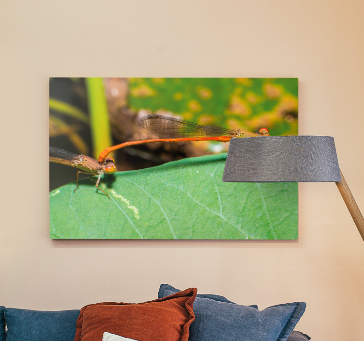 Upplev skönheten i naturen med våra kanvas sländor par av trollsländor. Denna fantastiska design fångar detaljerna av trollsländor som svävar över gröna blad, vilket skapar en förtrollande atmosfär i ditt hem. Med närbilder av insekterna och löv som ger en känsla av utomhus, är detta fotografi en perfekt hyllning till naturens underverk. Varje tavla är en konstverk som bjuder in ljus och liv till ditt rum!