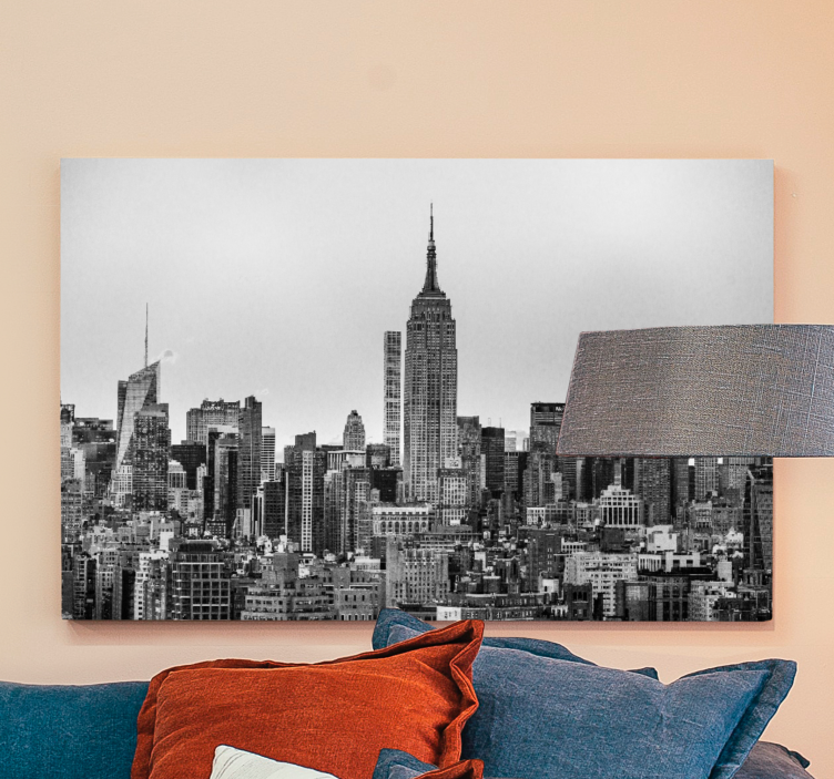 Upplev den fantastiska kanvas städer och länder new york city silhuett som fångar den ikoniska stadsbilden av New York City. Designen är en visuell fest med sin eleganta horisont som pryds av mäktiga skyskrapor i gråskala. Varje byggnad och byggnader i denna stad bidrar till en urban atmosfär som gör den perfekt för att förvandla ditt hem. Låt denna stadsbild ge liv och karaktär till ditt utrymme!