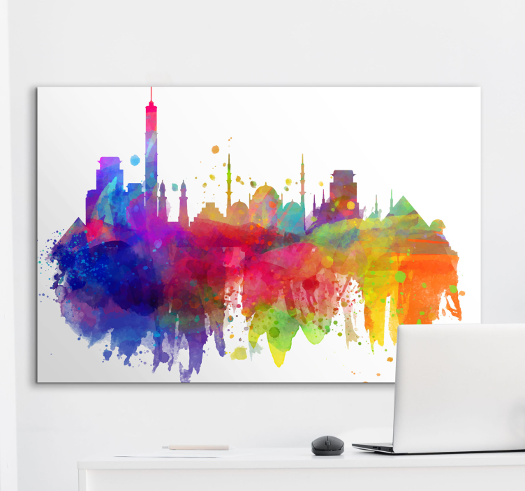 Referens: Q809Älskar färgskyskrapor? Då är detta konstnärliga skyskrapastadsdukstryck något för dig!