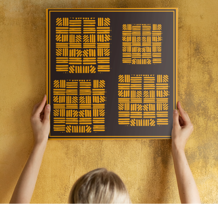 Den moderna kanvas geometriska arrangemang konceptet bjuder på en fantastisk design som kombinerar afrikanska influenser med gyllene och gulaktiga toner. Den abstrakta konsten är skapad med rader av unika former som skapar ett vackert rutnät. Ramen ger en elegant inramning som förhöjer det geometriska uttrycket och gör att tavlan verkligen står ut i varje rum!