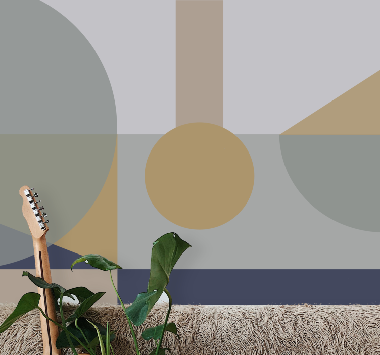 Referens: F12047En arrangemang av olika geometriska former i mjuka toner skapar en fängslande visuell effekt. Designen innehåller överlappande cirklar och rektanglar, vilket bildar ett engagerande abstrakt verk. Denna konstnärliga representation omfamnar enkelhet och subtilitet, vilket förkroppsligar modern elegans och tilltalande estetik.