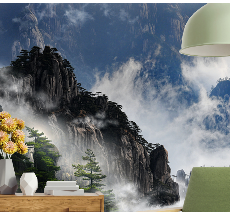 Upplev den fantastiska skönheten av Fototapeter natur bergig dimma scen! Denna unika design fångar magin av fjäll, himmel och moln i en dimmig natur. Med ett vackert fotografi av berg och träd, skapar den en lugn och harmonisk atmosfär i ditt hem. Låt dig svepas med av dimman som omsluter landskapet och ge ditt rum en känsla av frid och stillhet!