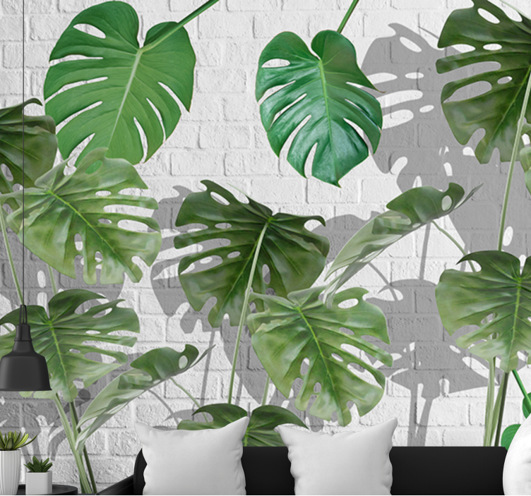 Upplev den tropiska skönheten med våra Fototapeter natur monstera bladarrangemang. Den fantastiska designen bjuder på en grafisk symfoni av lövrika mönster som svävar över en subtil bakgrund av tegelstenar. Med ett överflöd av grönska skapar denna tapet en lugn och inbjudande atmosfär i ditt hem, perfekt för att förvandla varje rum till en grön oas.