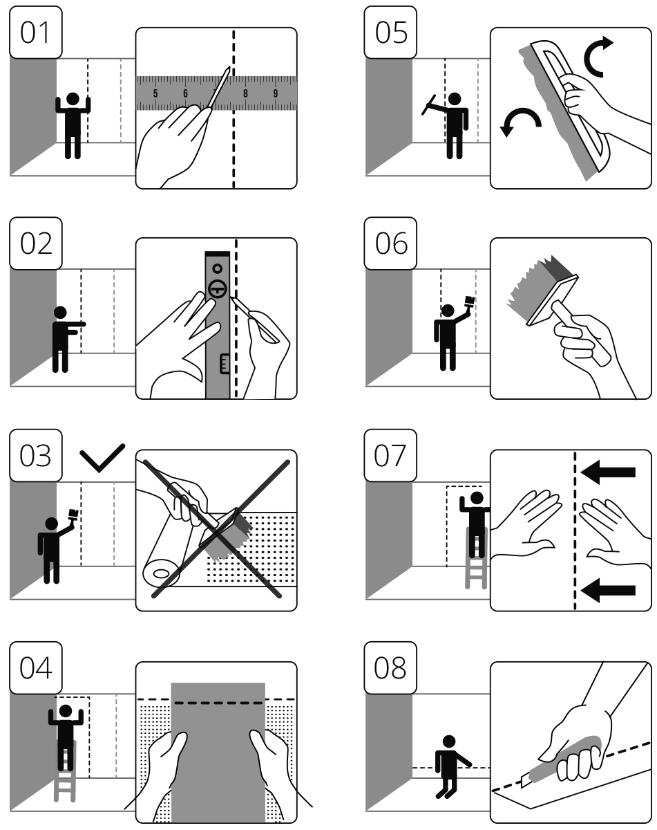 * Due to the drying process of the glue, it is not recommended to apply wallpapers in rooms with low humidity and with temperatures of below 10ºC . The optimal room temperature during the application and drying process is between 18-21ºC