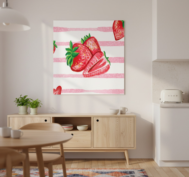 Att ha en Poster kök sömlösa jordgubbar på randig bakgrund poster kök i ditt hem är ett fantastiskt sätt att ge liv åt din inredning! Tänk dig en varm och inbjudande atmosfär där varje måltid känns lite mer speciell. Denna affisch är inte bara en dekoration; den är en inspirerande påminnelse om naturens skönhet och ger en fräsch känsla till ditt kök. Låt den sprida glädje och kreativitet varje gång du kliver in i rummet!