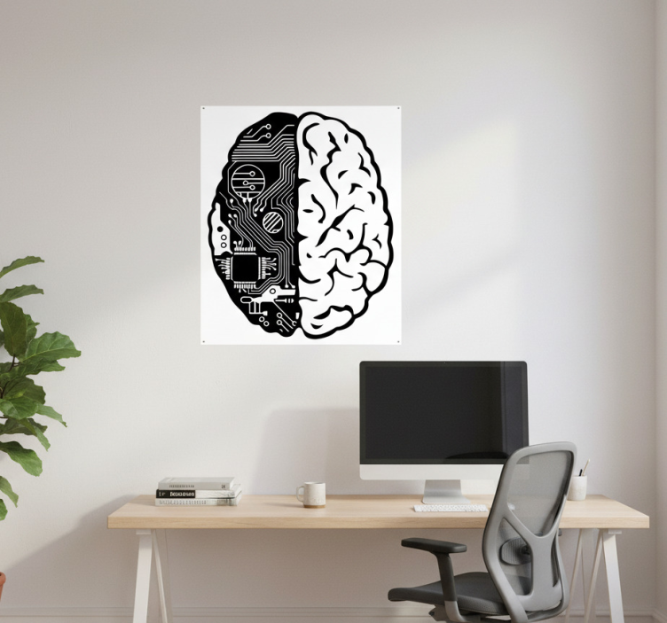 Att dekorera med vår Poster kontor teknisk hjärna ger dig inte bara en stilren inredning utan också en intellektuell atmosfär. Denna Poster kontor är designad för att stimulera tankar och idéer, vilket gör den idealisk för både arbetsplatser och hemmakontor. Med sin unika grafiska stil blir den en samtalsstartare och ger en känsla av professionalism och framtidstro, perfekt för den moderna yrkespersonen!