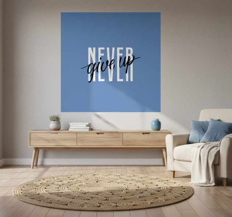 Referens: G821Vår Poster vardagsrum citat ge aldrig upp är en fantastisk produkt som kombinerar stil och inspiration. Denna affisch är tryckt på 180g/m2 papper med en halvmatt finish som eliminerar reflexer, vilket gör den perfekt för vardagsrummet. Med sin höga färgintensitet fångar designen verkligen ögat och ger ett lyft till varje vägg!