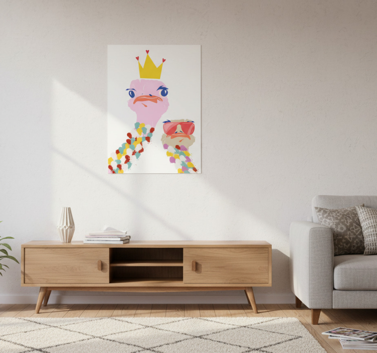 Poster vardagsrum färgglada strutsar konstnärlig stil