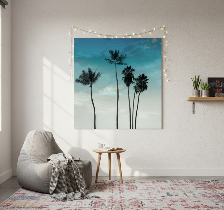 En Poster vardagsrum fem långa palmträd design Poster vardagsrum är mer än bara en dekorativ detalj; det är en inspirationskälla som förvandlar ditt rum till en oas av lugn och skönhet. Genom att integrera denna poster i din inredning skapar du en atmosfär av avkoppling och stil. Låt denna fantastiska design bli en samtalspunkt och ge ditt hem en tropisk känsla som är både fräsch och inbjudande.