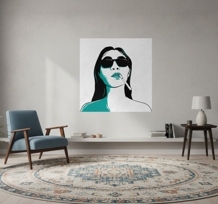 En Poster vardagsrum kvinna ansikte rökande Poster vardagsrum är mer än bara en dekoration; det är en konversationsstartare! Denna affisch tillför en unik karaktär till ditt hem och skapar en inbjudande atmosfär. Dess stiliga design och djärva tema inspirerar både dig och dina gäster, vilket gör den till ett utmärkt val för den som vill ge sitt hem en personlig touch. Låt din vägg tala och visa upp din smak för modern konst!