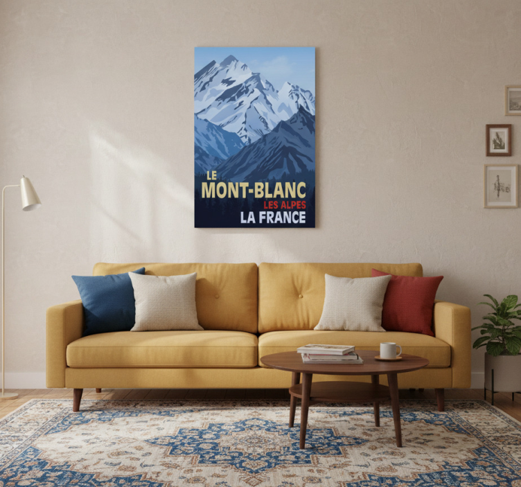 För att få ut det mesta av din Poster vardagsrum mont-blanc retro stil, placera den på en central vägg där den verkligen kan lysa. Använd Affischer vardagsrum med dubbelhäftande tejp för att fästa den på väggen, eller rama in den för en mer elegant look. Kom ihåg att låta den stå ut genom att omge den med andra konstverk eller dekorationer för en harmonisk helhet!