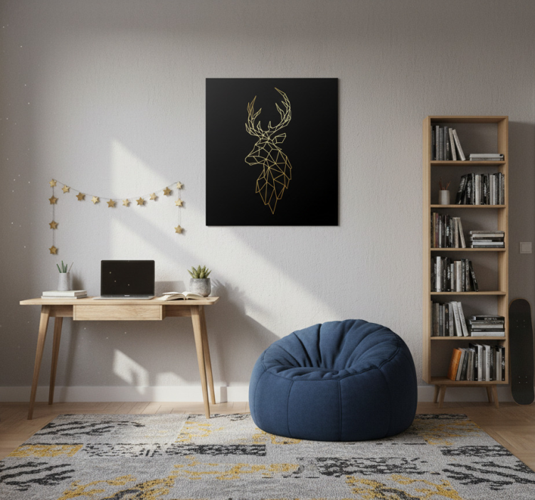 Att placera Poster vardagsrum origamiälgar i guld är enkelt och roligt! Du kan använda dubbelhäftande tejp på affischens baksida för en ren och modern look. Alternativt kan du rama in den med starkare lim för en mer permanent lösning. För en enklare metod kan häftstift eller återanvändbar blu-tack appliceras som tejp, vilket gör det möjligt att flytta runt affischen utan att skada väggen. Placera den i ögonhöjd för bästa effekt!