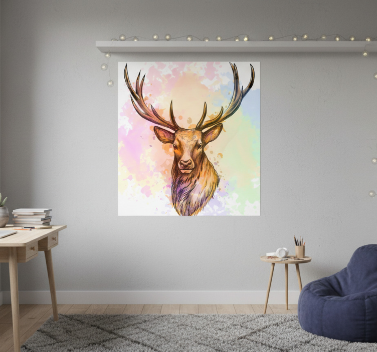 Denna fantastiska Poster vardagsrum paint splash älg kombinerar en livfull färgexplosion med en elegant älgdesign som ger en unik karaktär till ditt hem. Med en 180g/m2 ytvikt och en halvmatt finish utan reflexer, är denna affisch perfekt för att verkligen lyfta fram din inredning. Den höga färgintensiteten gör att de livliga färgerna verkligen poppar och skapar en inbjudande atmosfär i ditt vardagsrum!