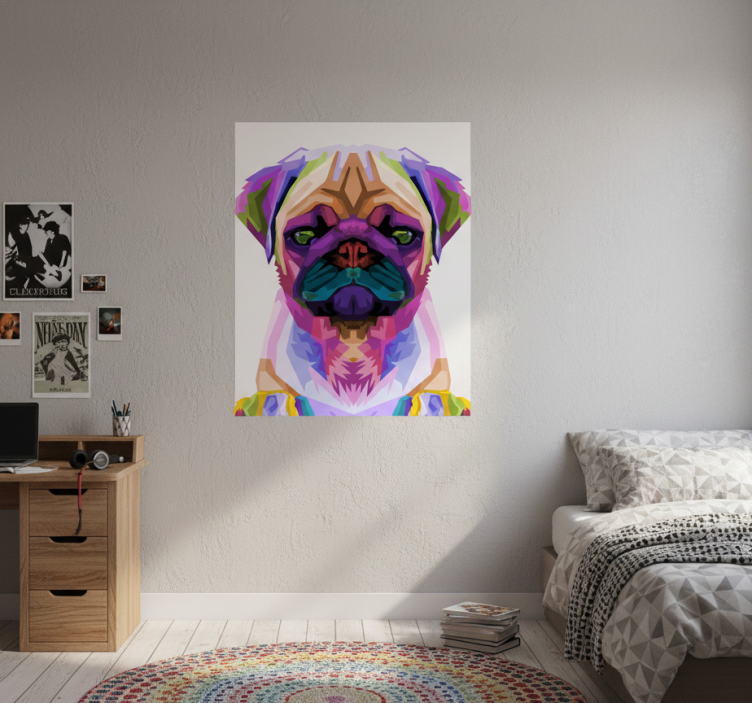 En Poster vardagsrum pop art mops är inte bara en dekoration, utan en möjlighet att uttrycka din personlighet! Den här affischen förvandlar ditt hem till en inspirerande plats och sprider en känsla av glädje. Dess unika design gör att den passar in i många olika inredningsstilar, från modern till retro. Låt denna poster bli en samtalsstartare och en källa till inspiration för både dig och dina gäster!