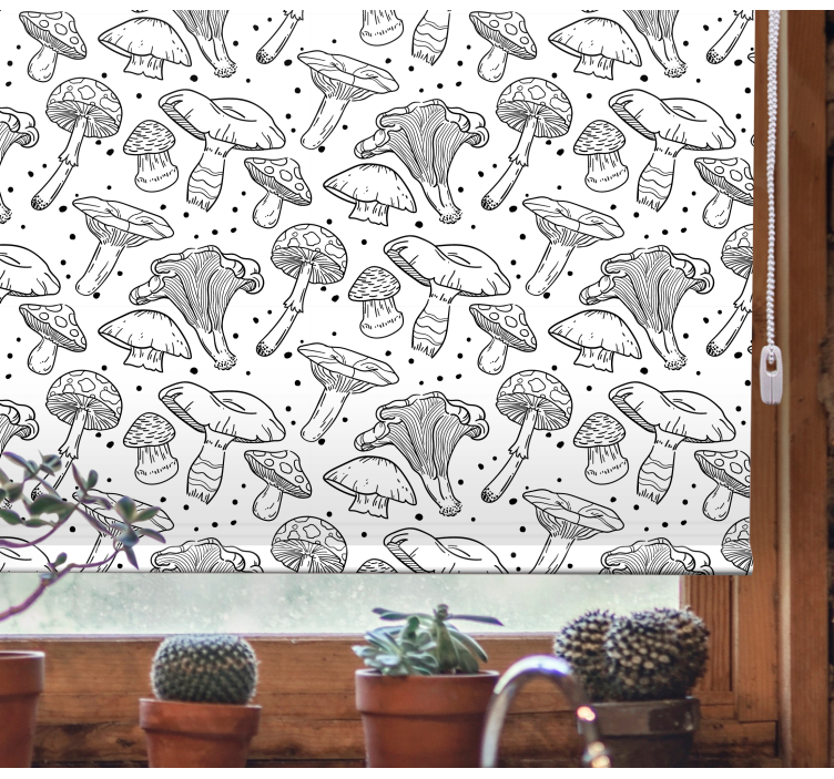 Få den här designen och njut av alla unika element som du kan använda för att ändra utseendet på ditt fönster när som helst. Detta är mer än bara en enkel dekoration. Denna produkt är tillverkad med det bästa materialet som finns på marknaden och med din tillfredsställelse i åtanke. Du kan styra mängden ljus som kommer in i ditt hus när som helst. Den är lätt att installera och ta bort. Det här är perfekt om du är ett fan av färgglada svampar med en modern estetik. Den har en vit bakgrund med handritat svampmönster rullgardin.