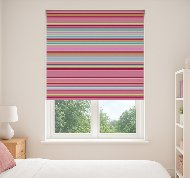 Referens: E5856Upptäck vår fantastiska Rosa randmönster Rullgardin tonåringar som ger ett lekfullt och stilrent uttryck till varje rum! Denna rullgardin har ett vackert rosa randmönster som skapar en härlig atmosfär, perfekt för tonårsrum. Med sina 100 % anpassningsbara mått och tre olika texturer, erbjuder den inte bara estetiskt tilltalande design utan också funktionalitet. Den är enkel att städa och demontera med bara två klick, vilket gör att du snabbt kan rengöra både fönstret och dess omgivningar. Dessutom skyddar den mot direkt solljus, ger integritet när den är sänkt och hjälper till att reglera rumstemperaturen, vilket skapar en bekväm och säker miljö.