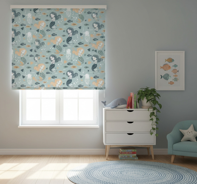 En Rrullgardin barn blå magisk sjöjungfru mönster Rrullgardin barn är den perfekta lösningen för att förvandla ditt barns rum till en drömvärld! Den färgglada designen stimulerar fantasin och ger en unik touch till inredningen. Genom att använda denna produkt, kan du enkelt skapa en inspirerande miljö där ditt barn kan leka och sova tryggt. Den är också 100 % anpassningsbar, vilket gör att du kan välja den perfekta storleken för just ditt fönster. Låt din kreativitet flöda och gör rummet till en plats där drömmar blir verklighet!