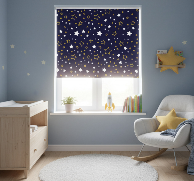 Rrullgardin barn natthimmel med vita och gula stjärnor