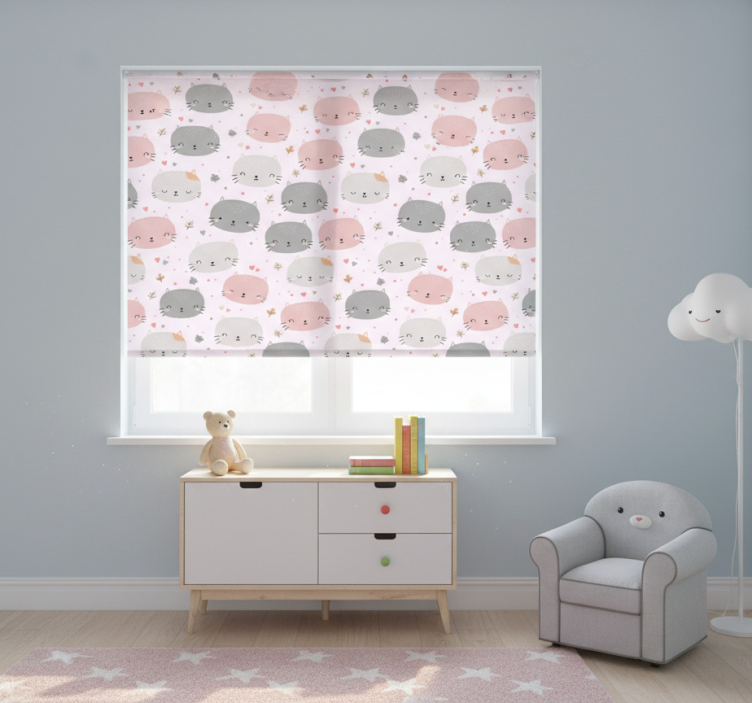 Rrullgardin barn söta grå och rosa katter