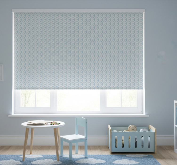 Rullgardin barn blå och vita romber design