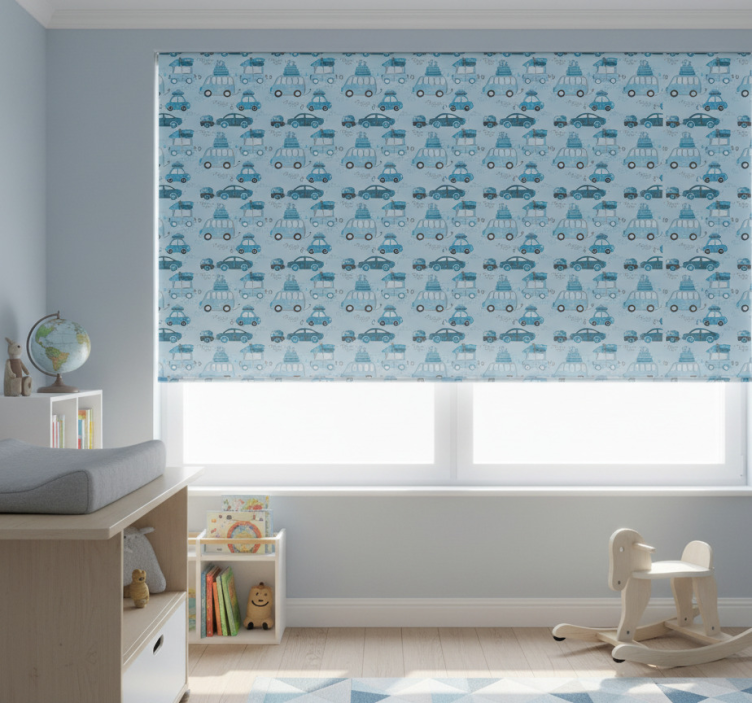 Rullgardin barn blå stadsfordon nordisk stil