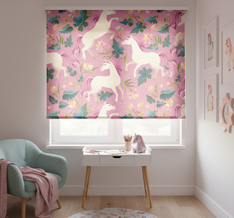 Rullgardin barn rosa och blommig hästdesign