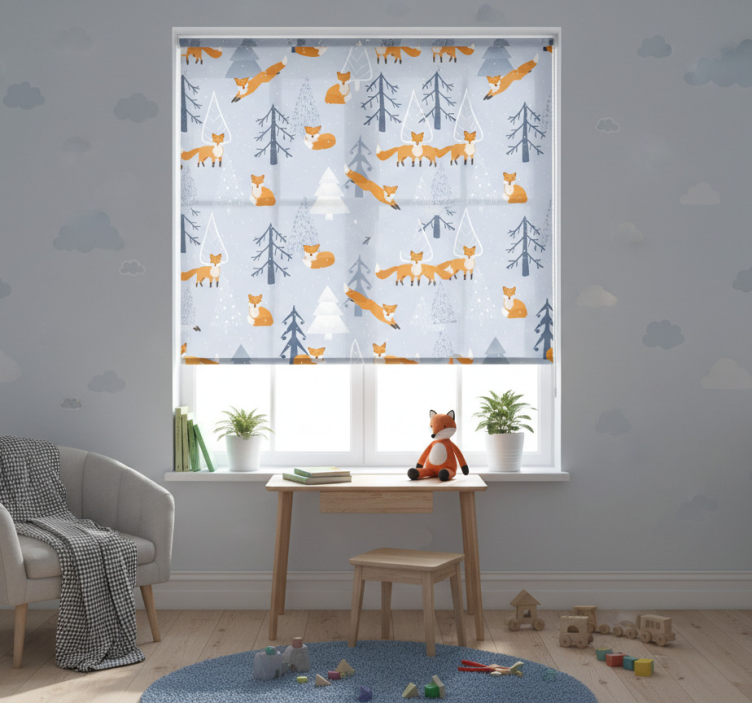 Rullgardin barn söt räv vinter skog mönster