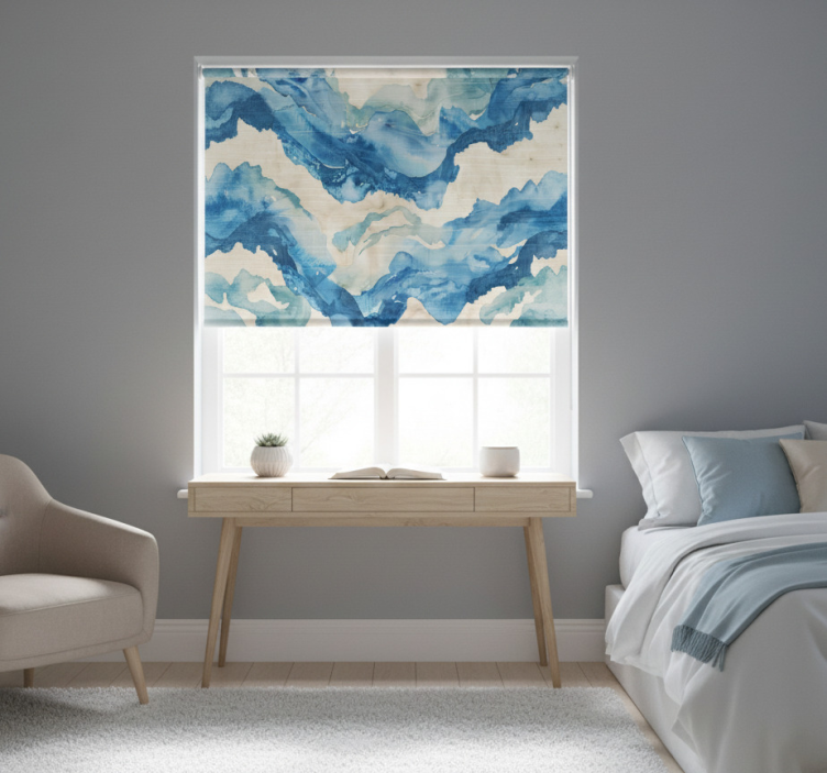 Rullgardin blå marmorerade vågor