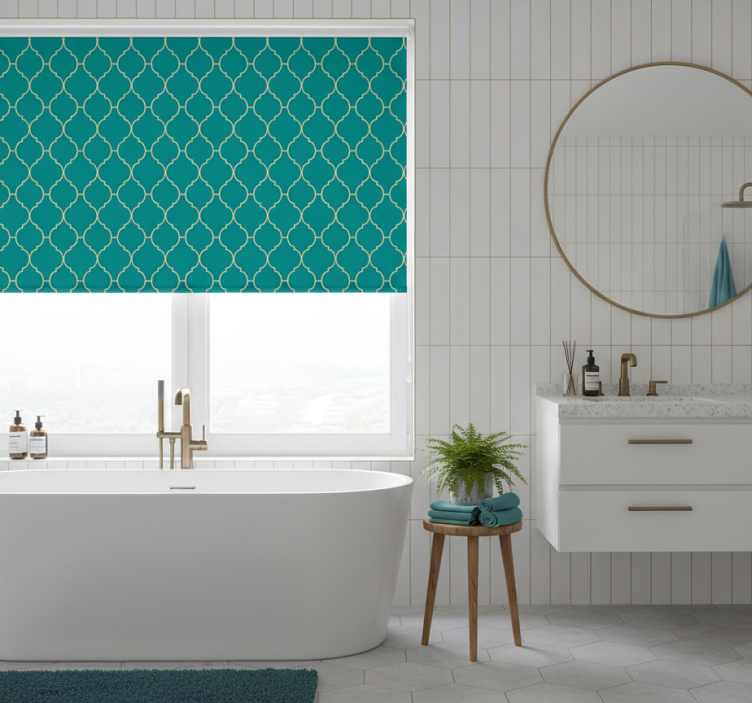 Att välja en Rullgardin blå med guld och turkos mönster är ett utmärkt sätt att förhöja din inredning! Den eleganta färgkombinationen ger liv åt alla rum och skapar en harmonisk atmosfär. Med denna rullgardin kan du enkelt förvandla ett tråkigt utrymme till en inspirerande och stilfull miljö. Dess 100 % anpassningsbara mått gör att den passar perfekt i ditt hem, oavsett stil. Dessutom erbjuder den tre olika texturer, så att du kan välja den som passar din smak och behov bäst. Låt din inredning tala för sig själv med denna fantastiska rullgardin!