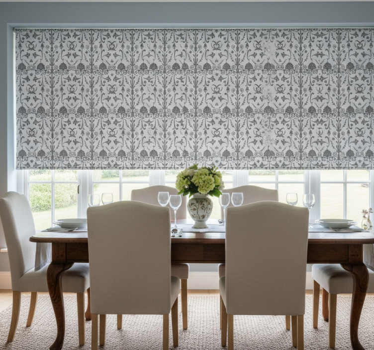 Rullgardin för matsal grå fransk lantstil