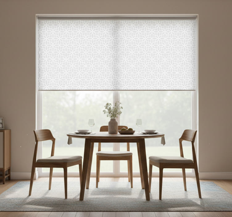 Rullgardin för matsal grå och vit modern mönster