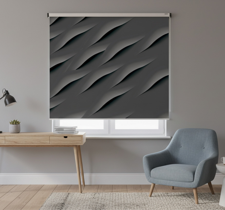 En fängslande design med böljande vågmönster i olika nyanser av grått. Linjernas flöde skapar en känsla av rörelse och bjuder in till en lugn atmosfär. Samverkan mellan ljus och skugga ger djup och förhöjer den visuella upplevelsen. Perfekt för moderna estetiska uttryck.