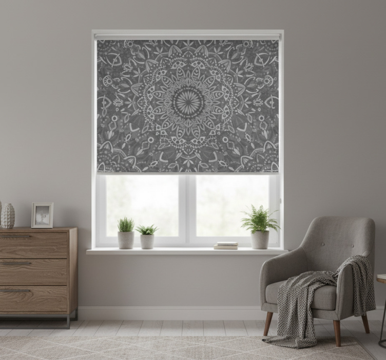 Rullgardin grå med intrikat mandalamönster