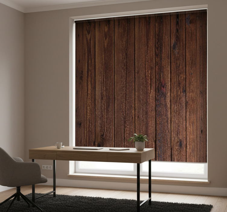 Rullgardin hemmakkontor mörkbruna rustika träplankor