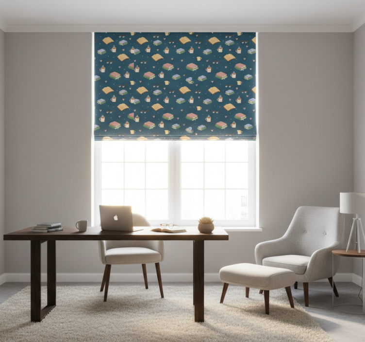 En Rullgardin hemmakkontor mysigt läsmönster Rullgardin hemmakkontor är mer än bara en praktisk lösning för att blockera ljus; den förbättrar också inredningen av ditt kontor. Med sina stiliga mönster och texturer kan den förvandla ett vanligt rum till en inspirerande arbetsplats. Att ha en vacker rullgardin gör att du kan uttrycka din personliga stil och skapa en atmosfär som främjar kreativitet och produktivitet. Dessutom är den lätt att städa och demontera, vilket gör den till en smart och hållbar dekorationslösning!