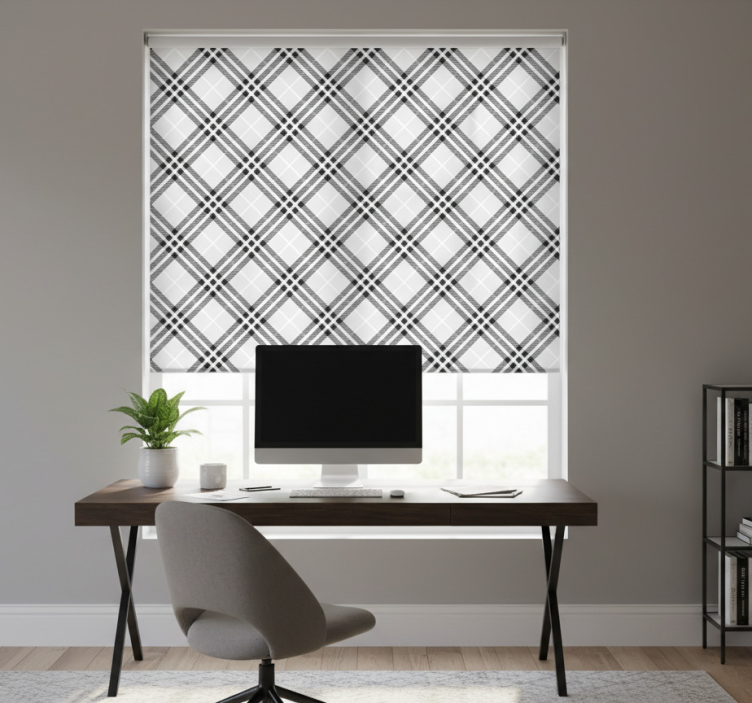 Rullgardin hemmakkontor svart och vit skotsk tartan