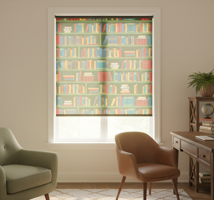 Rullgardin hemmakkontor vintage grön bibliotek