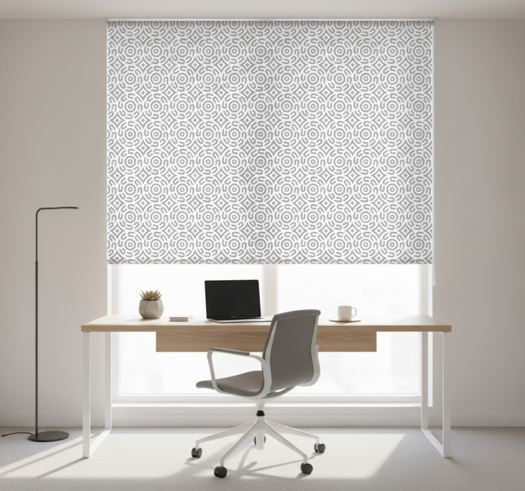 En Rullgardin hemmakkontor vit geometrisk mönster med cirklar Rullgardin hemmakkontor är mer än bara en funktionell lösning för fönstret – den blir en central del av din inredning! Genom att välja denna rullgardin kan du skapa en lugn och inspirerande arbetsmiljö, där du kan fokusera på dina uppgifter utan distraktioner. Den erbjuder både integritet och stil, vilket gör att du kan arbeta ostört och samtidigt njuta av en vacker inredning. Den är också perfekt för att reglera rumstemperaturen och skydda mot obehagligt starkt solljus. Med en sådan rullgardin kan du verkligen förvandla ditt hemmakontor till en plats där kreativiteten flödar!