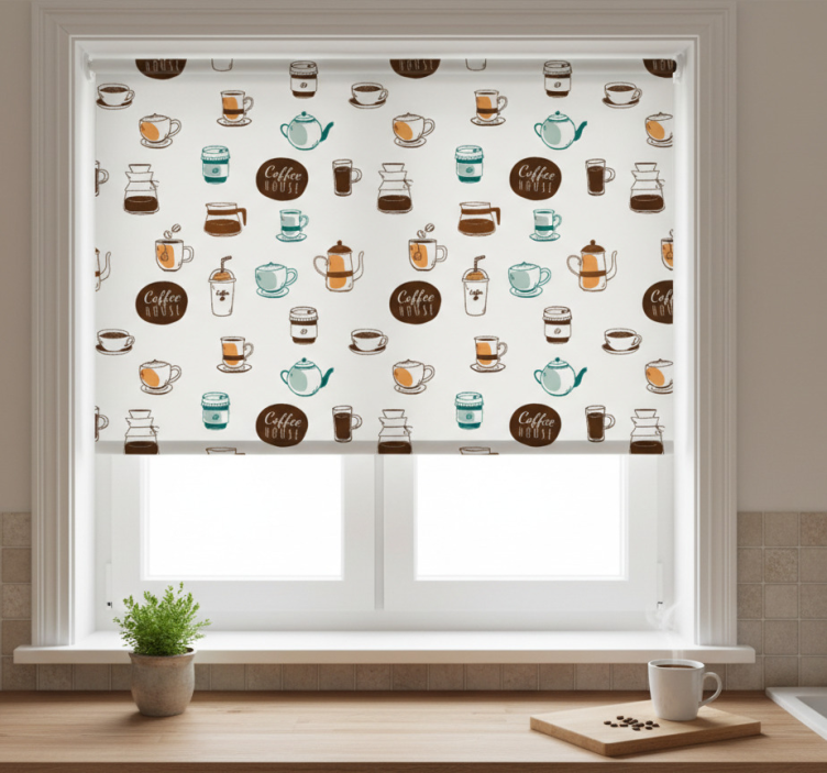 En Rullgardin kök kaffehus mönstrad Rullgardin kök är inte bara en praktisk lösning för ditt hem, utan också en fantastisk inredningsdetalj! Denna rullgardin ger ditt kök en personlig touch och förvandlar rummet till en inbjudande plats för både familj och vänner. Med sitt eleganta mönster kan den enkelt anpassas till din befintliga inredning. Att ha en rullgardin som kombinerar stil med funktionalitet gör att du kan njuta av både ljus och integritet i ditt kök. En perfekt balans mellan design och bekvämlighet!