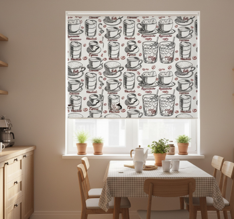 Vår Rullgardin kök kaffemönster är perfekt för att förvandla ditt kök till en stilfull och funktionell plats. Med sina unika mönster och anpassningsbara mått kan du enkelt skapa en atmosfär som både är elegant och personlig! Det är inte bara en dekorativ detalj; den förbättrar verkligen inredningen av ditt rum och ger samtidigt ett praktiskt skydd mot ljus och insyn. Låt ditt kök bli en plats där du trivs och inspireras!