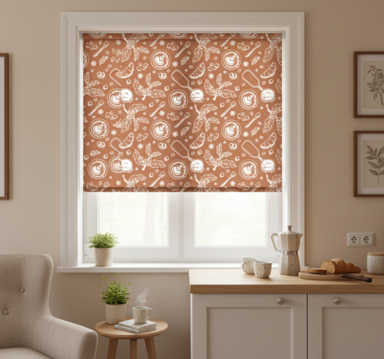 Rullgardin kök kaffemönster