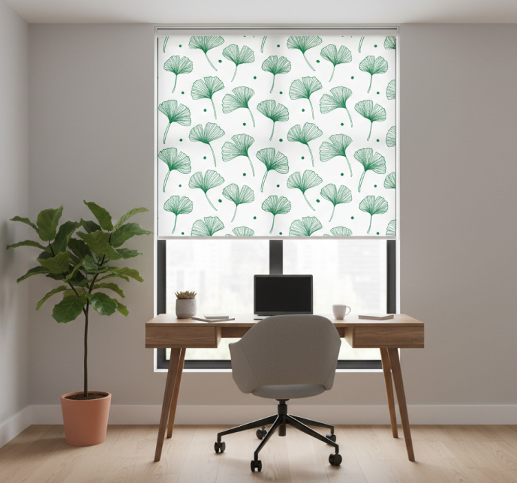 Rullgardin kontor stora ginkgo gröna blad