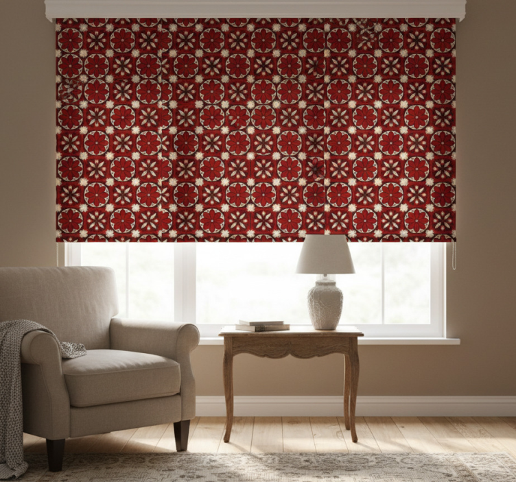Rullgardin röd vintage kakelmönster