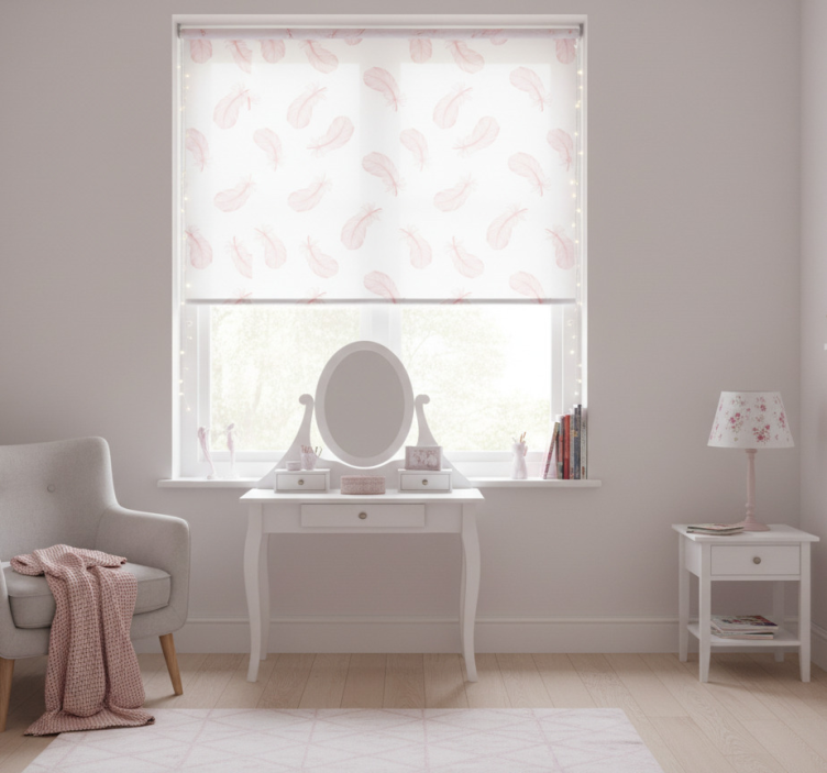 Den Rullgardin rosa med rosa fjädermönster är inte bara en funktionell lösning för att skydda ditt hem från direkt solljus, utan den förbättrar också inredningen av rummet. Den ger en känsla av integritet när den är sänkt och hjälper till att reglera rumstemperaturen, vilket skapar en behaglig atmosfär. Med 100 % anpassningsbara mått och tre olika texturer att välja mellan kan du enkelt hitta den perfekta lösningen som passar just ditt hem. Låt din inredning stråla med detta fantastiska val!