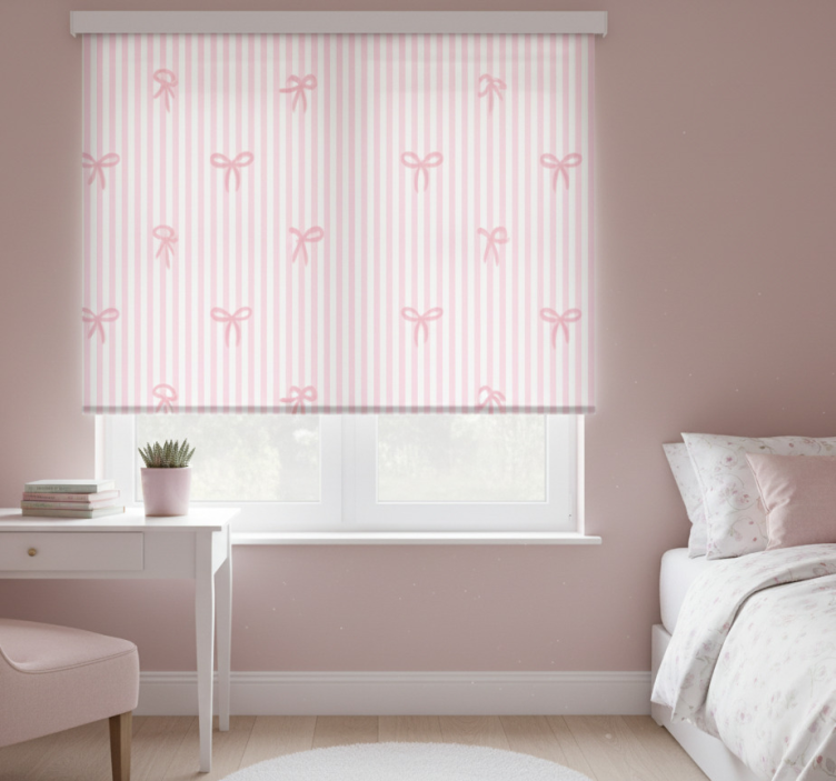 Rullgardin rosa med rosa ränder och rosetter