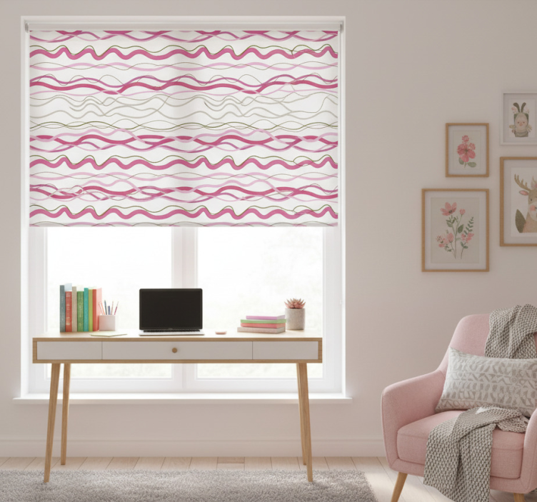 Referens: E8169Den Rullgardin rosa med rosa vågiga ränder är en fantastisk kombination av stil och funktionalitet. Med sina vackra rosa vågiga ränder, ger den en lekfull och livlig känsla till varje rum. Den är inte bara estetiskt tilltalande utan också praktisk med en enkel montering och demontering som gör det möjligt att snabbt och enkelt rengöra både fönstret och dess omgivning. Rullgardinen skyddar effektivt rummet från direkt solljus och ger integritet när den är sänkt, vilket gör den perfekt för både hem och kontor!