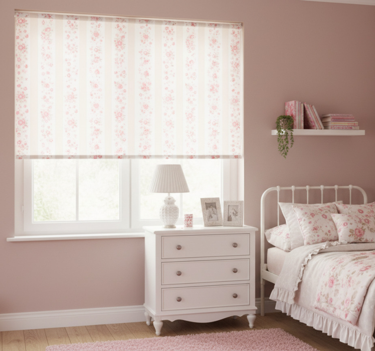 Rullgardin rosa retro blommor och ränder