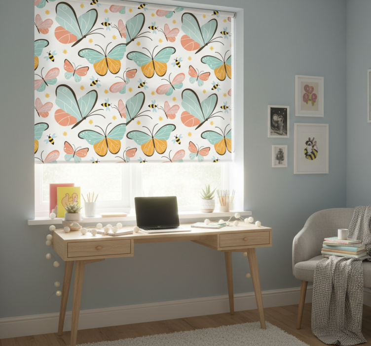 Att välja en Rullgardin tonåringar fjärilar och bin Rullgardin tonåringar är ett utmärkt val för att skapa en personlig och inspirerande miljö för ditt barn. Den fantastiska designen med fjärilar och bin får rummet att kännas livfullt och unikt. Dessutom ger den integritet när den är sänkt och hjälper till att reglera rumstemperaturen. Med denna rullgardin kan du enkelt förbättra inredningen i rummet och skapa en mysig atmosfär som din tonåring kommer att älska!