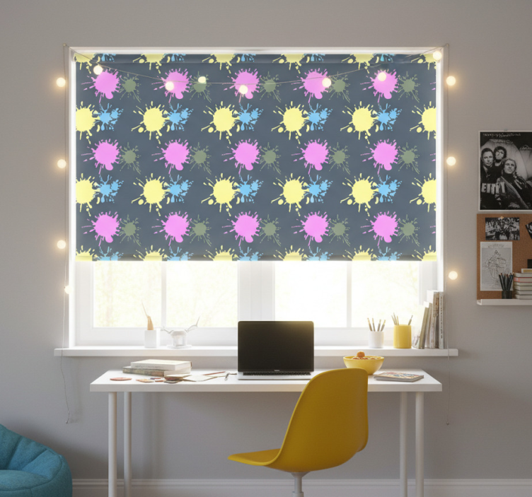 Referens: E7491Vår Rullgardin tonåringar flerfärgad vägg är den perfekta detaljen för att ge ditt rum en livlig och modern atmosfär! Med en fantastisk grafisk design som inkluderar flera färger skapar den en inspirerande och energigivande miljö. Denna rullgardin är inte bara vacker utan också funktionell, med egenskaper som enkel montering med 2 klick och lätt städning. Den skyddar effektivt rummet från direkt solljus och ger dig den integritet du önskar!