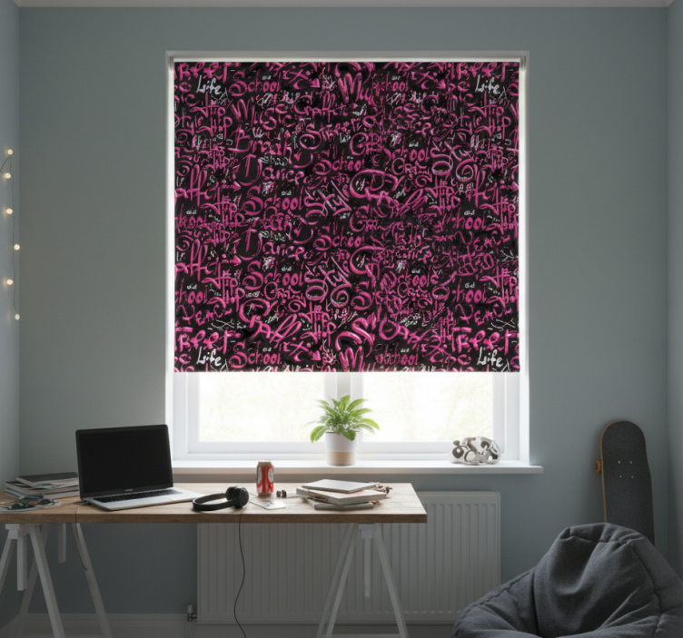 Att välja rullgardin tonåringar rosa och svart graffiti är ett perfekt sätt att ge ett rum en personlig och kreativ touch. Den här produkten är idealisk för tonåringar som vill uttrycka sin stil och smak. Med en så livfull och unik design blir den ett självklart fokus i rummet. En rullgardin tonåringar kan verkligen förvandla en ordinär vägg till en inspirerande plats där kreativitet och stil möts!